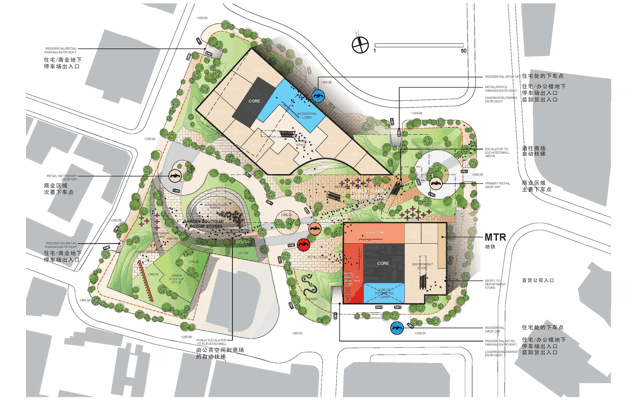 在这个高密度的混合用途开发项目中,三座充满活力的塔楼从一个热闹的花园覆盖的地面拔地而起。建筑的几何结构激活了街道的活力,又为整个城市街区的发展创造了视觉上的统一。