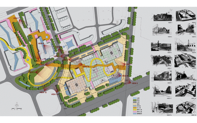 随着场地所需的项目数量的增加,分层和层次的变化成为一个关键的设计因素。目的保持强烈的公共空间在城市绿化和公共广场,有序从地平面通过一系列的城市形式包含大量的零售项目,允许一个购物目的地与外部连接关键的公共区域。